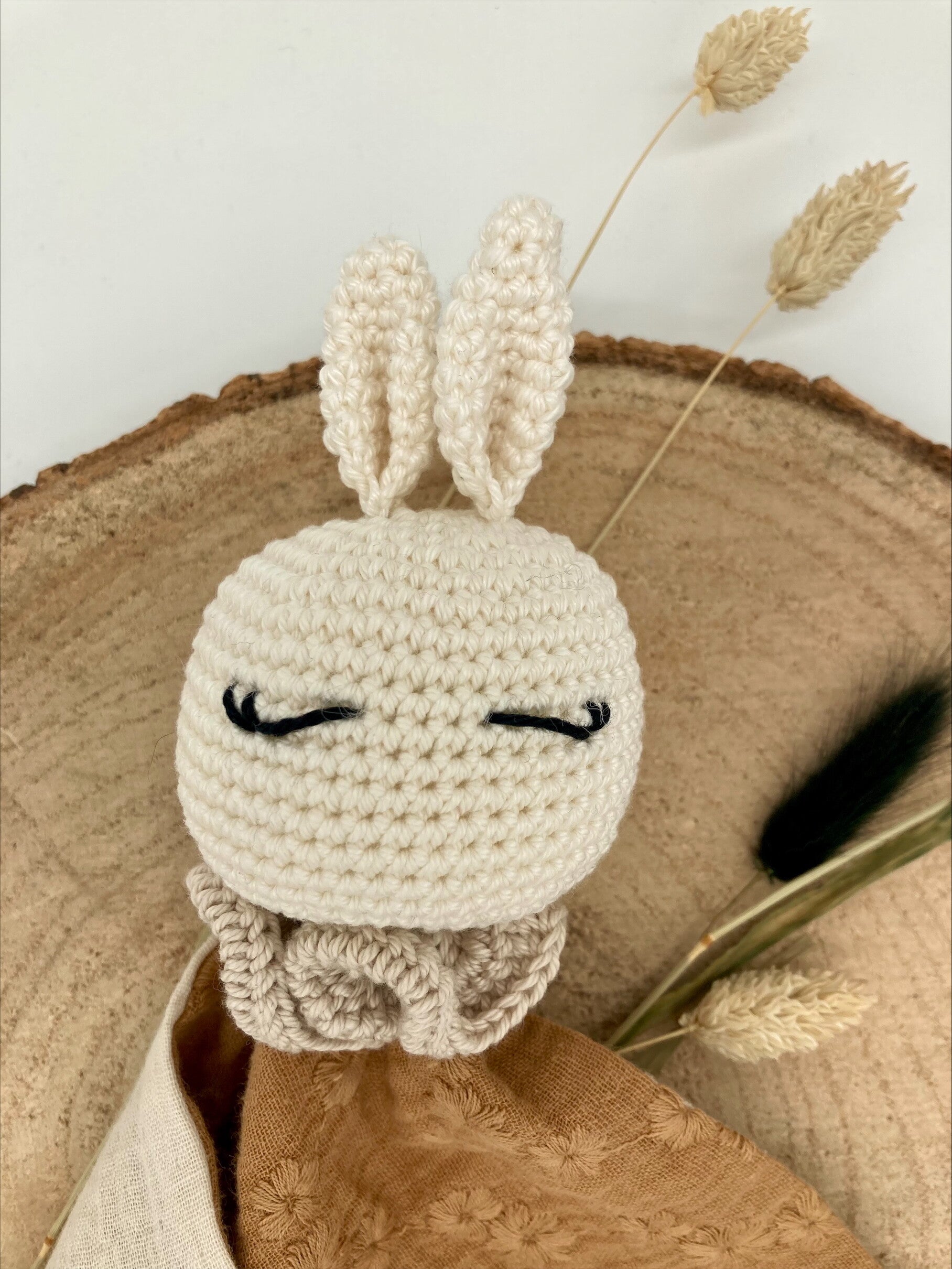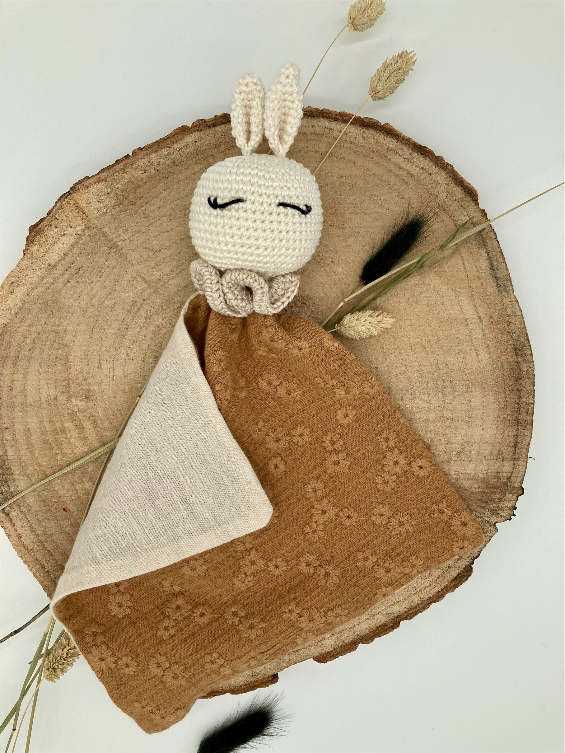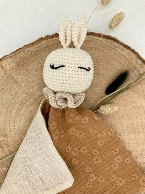 Dit knuffeldoekje is gehaakt van 100% katoengaren. Het doekje is gemaakt van hydrofiel stof. Zo is het een fijn vriendje voor jouw kindje om lekker mee te slapen. En hij kan ook nog eens in de was!