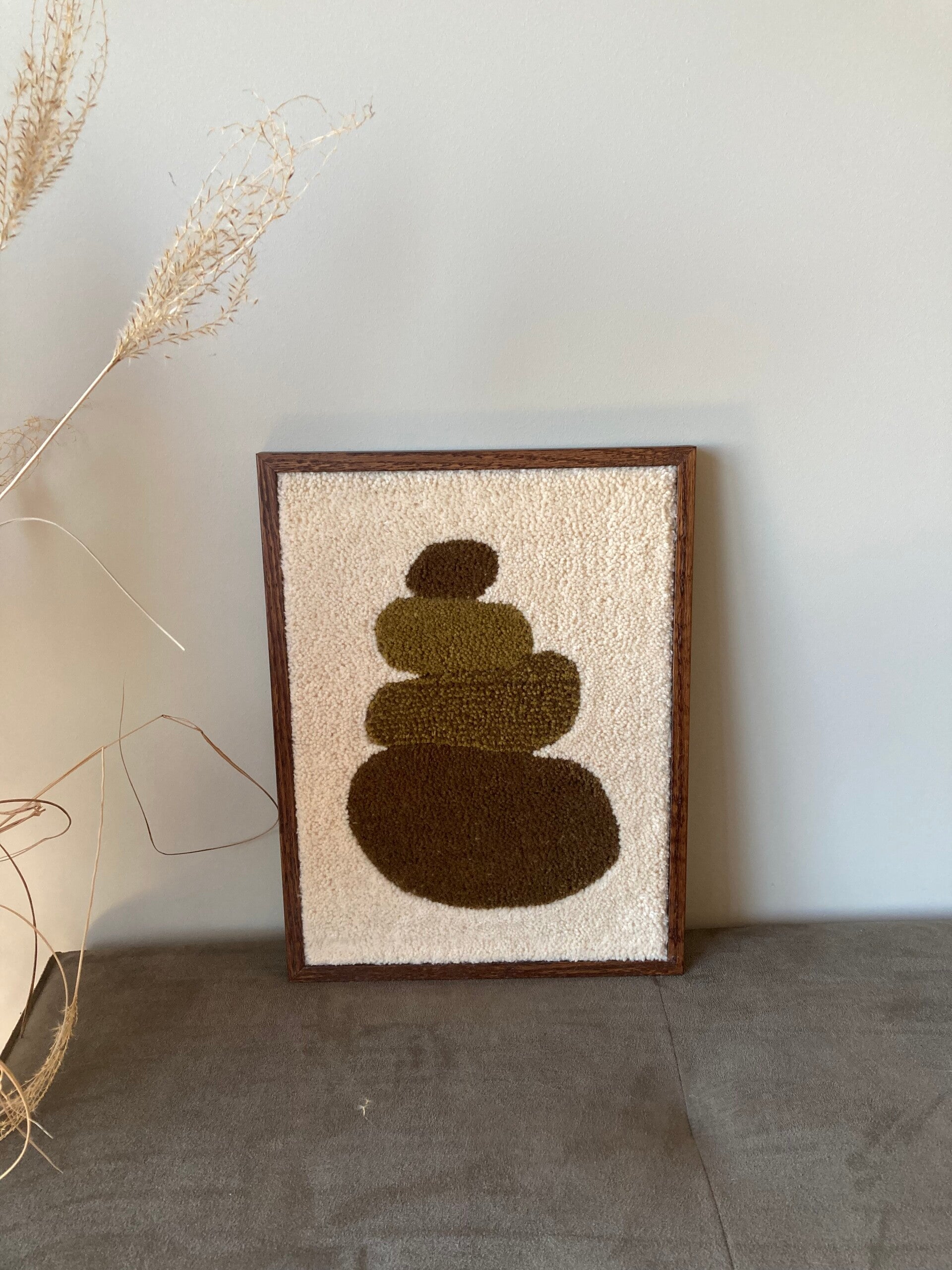 Dit handgemaakte getufte fluffy wandkleed (A3 formaat: 30cm x 40 cm) is een echte eye catcher in ieders interieur. Dit vrije werk is gemaakt van 100% Nieuw-Zeelandse wol. De eikenhouten lijst maakt het helemaal af! Kies zelf of je er een lijst van blank eikenhout of donker eikenhout omheen wil.